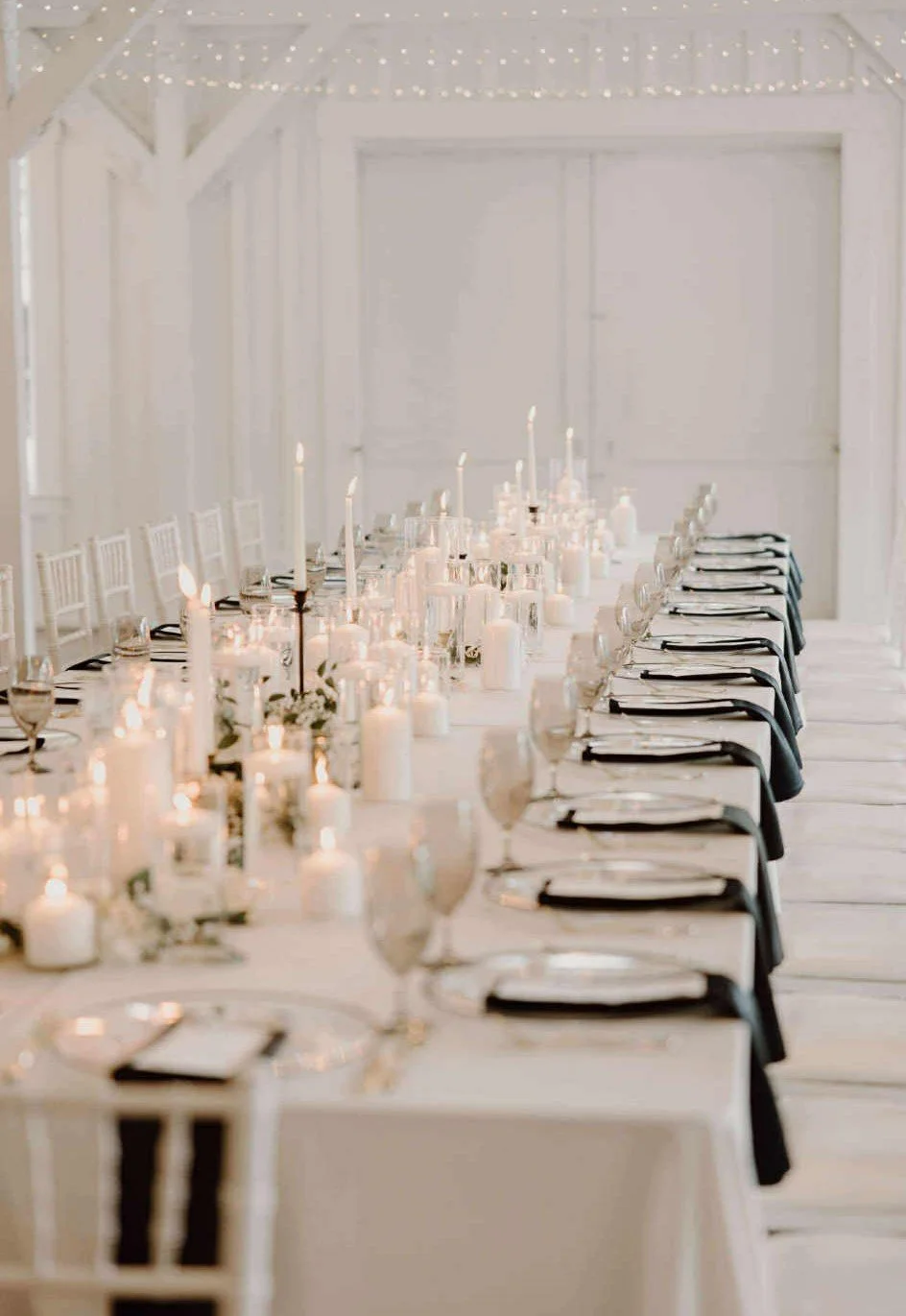 Glass Hurricanes, Pillar Candles, Beige Napkins